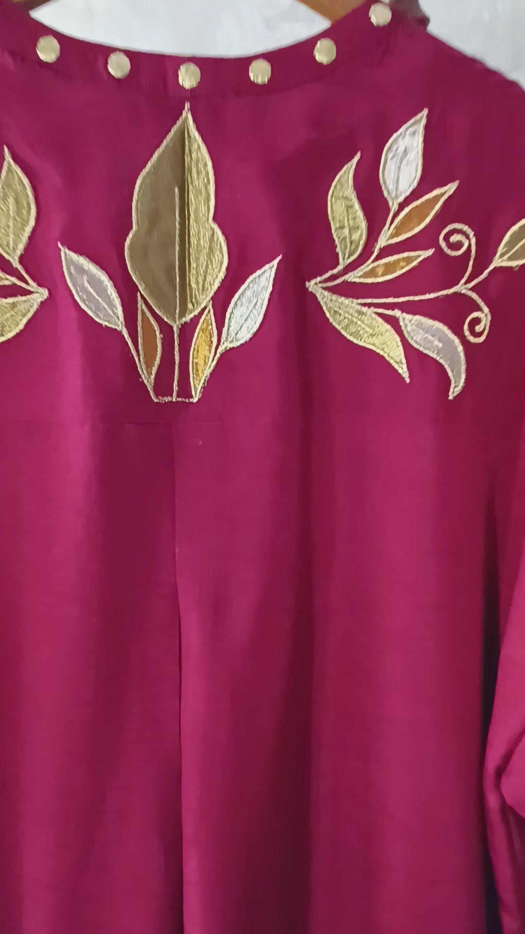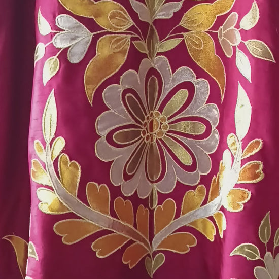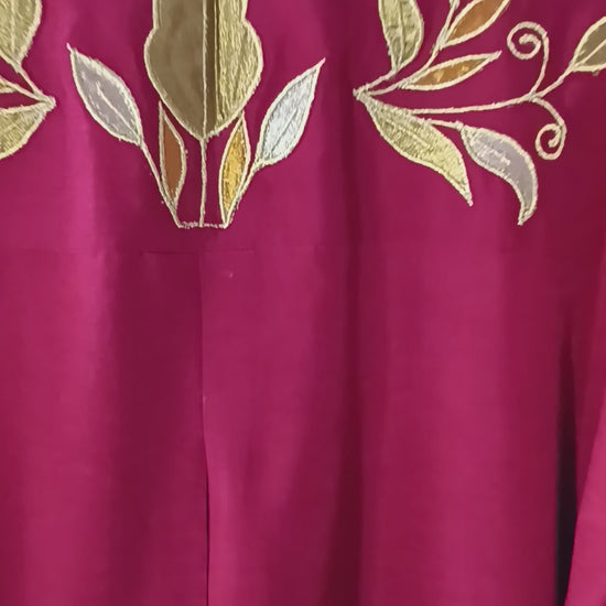 Dholki Edit - Slub Silk Kaftan Floral Royale - Fushcia