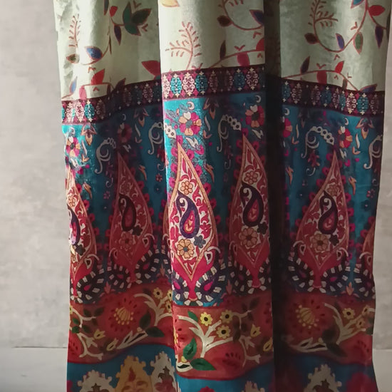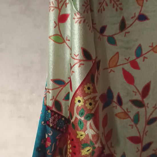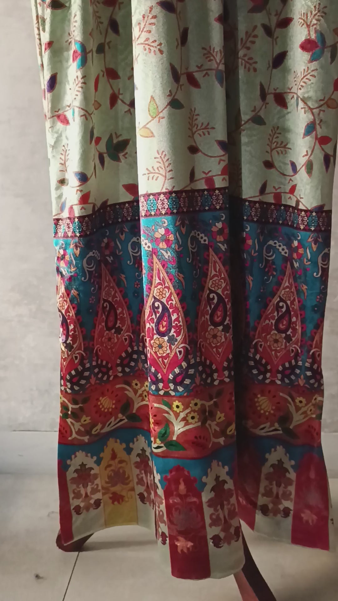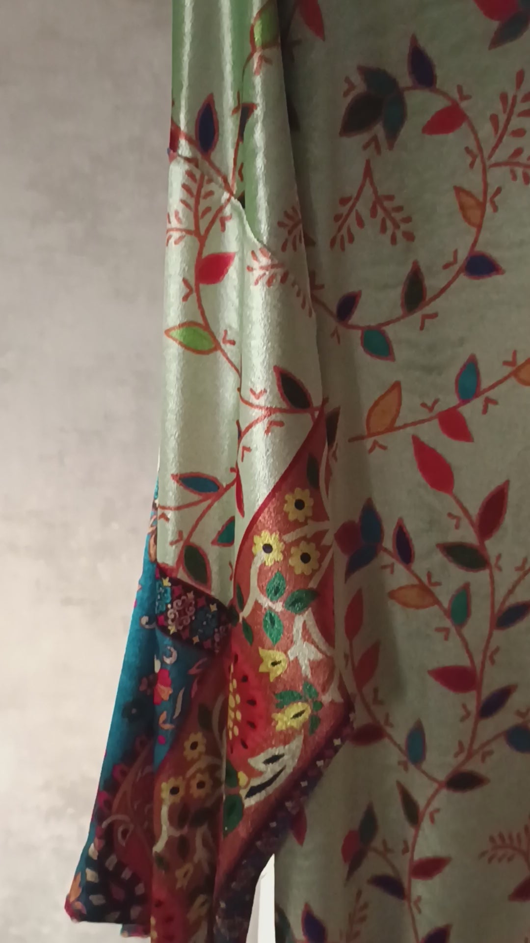 Formal Wear - Printed Velvet Kaftan Mint Green