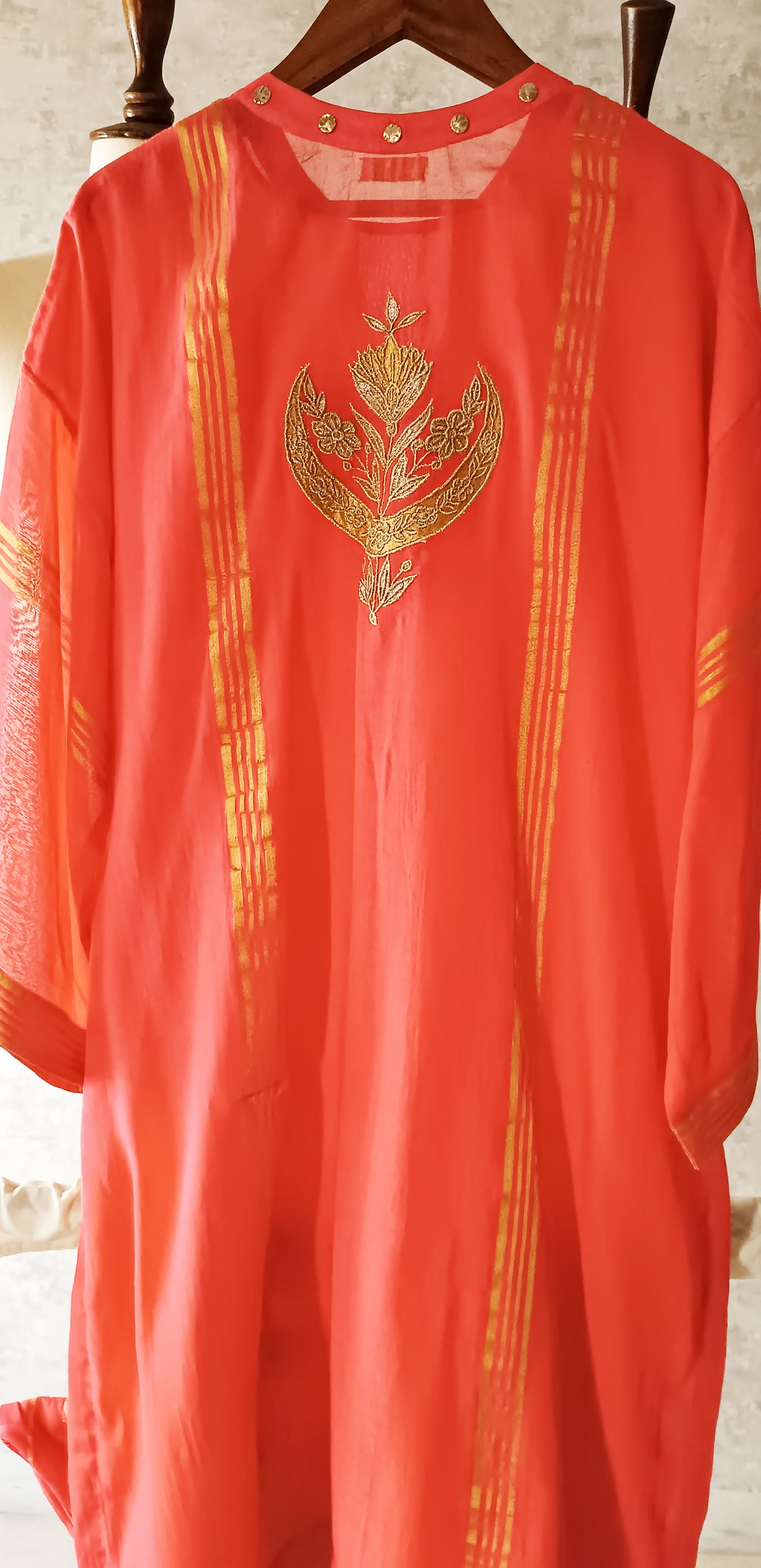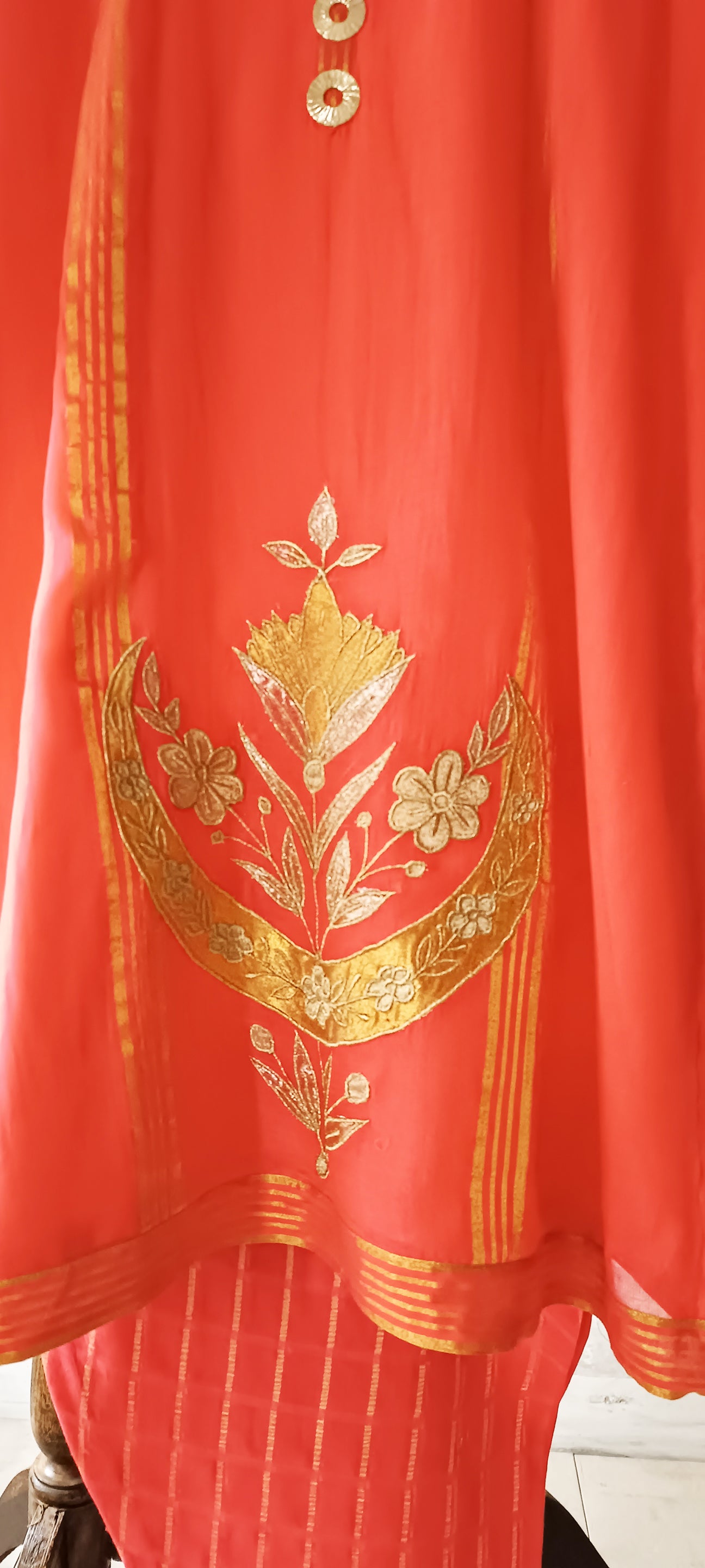 Pure Dhaka Malmal kurta with tissue Chaad phool Appliqué & gota detail