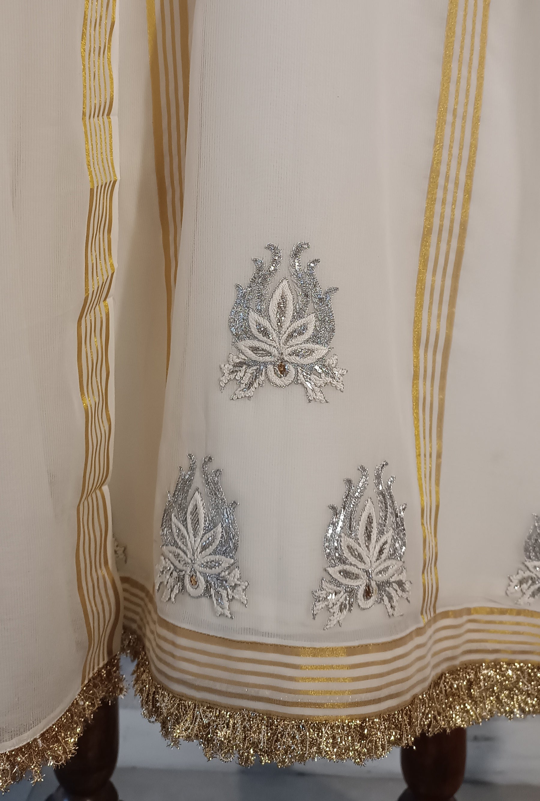 Pure Dhaka malmal gold striped Shirt Lined with malmal & Duppatta with Hand Embellished work ( 2pcs)