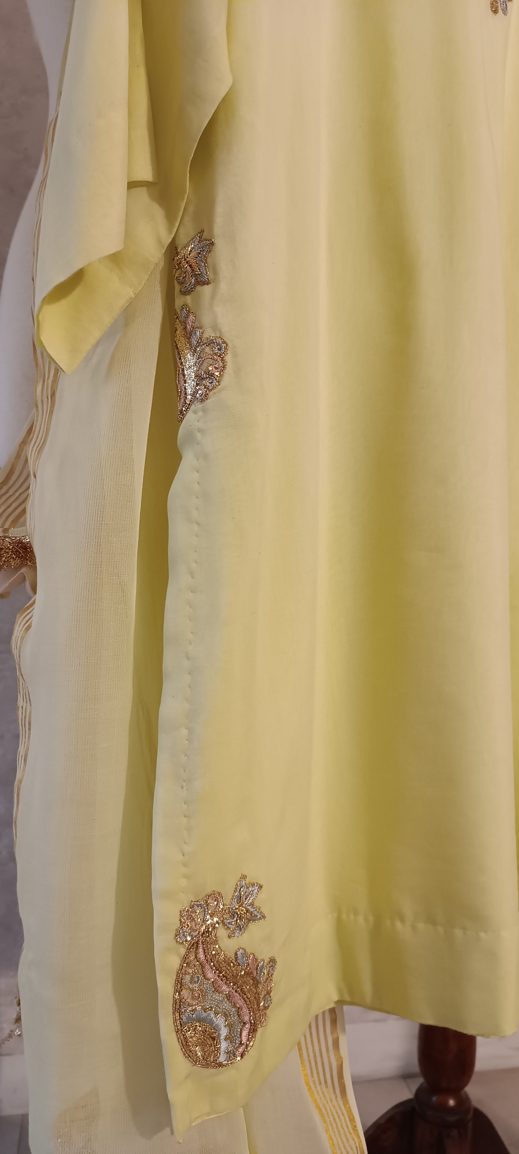 Pure Dhaka malmal gold striped Shirt Lined with malmal & Duppatta with Hand Embellished work ( 2pcs)