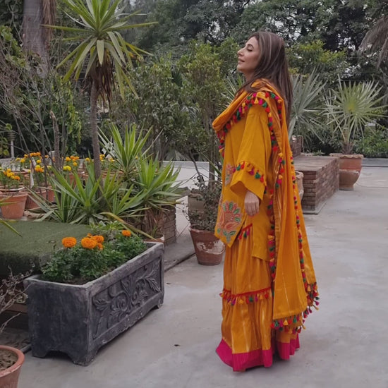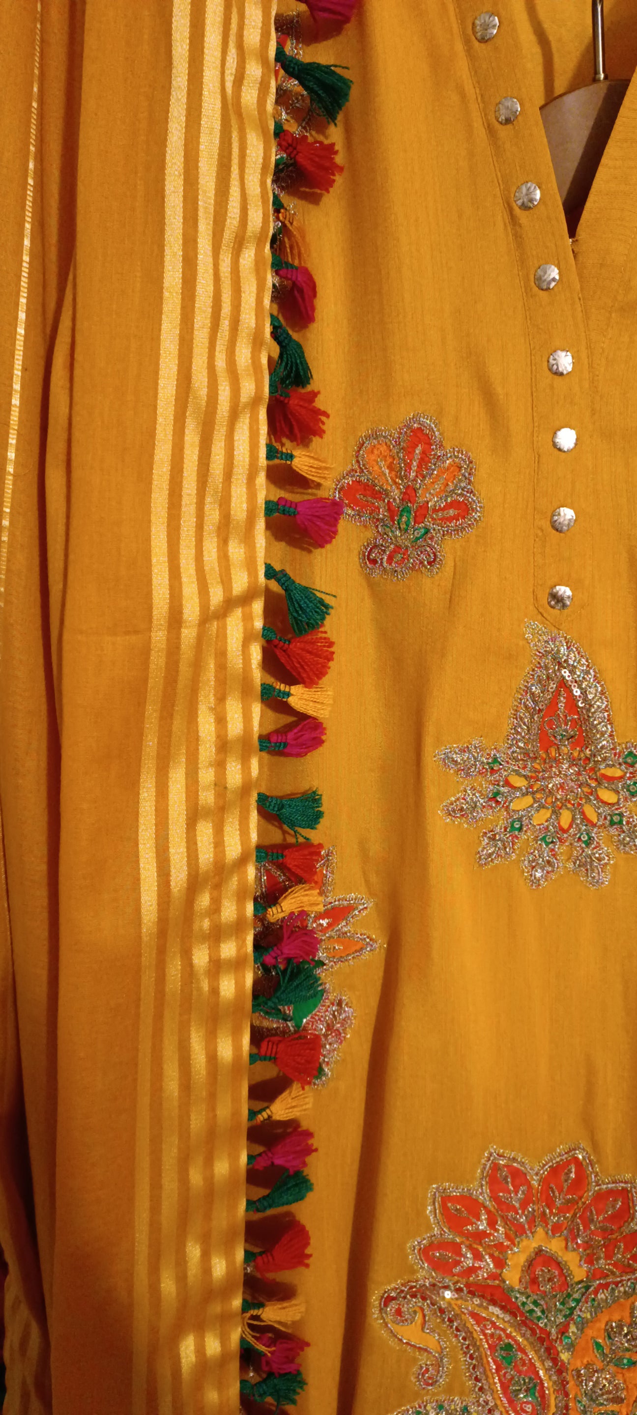 Spring Edit - Pure Silk with silk embellished Appliqué - Kesari Yellow