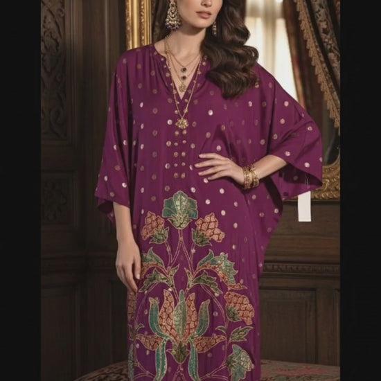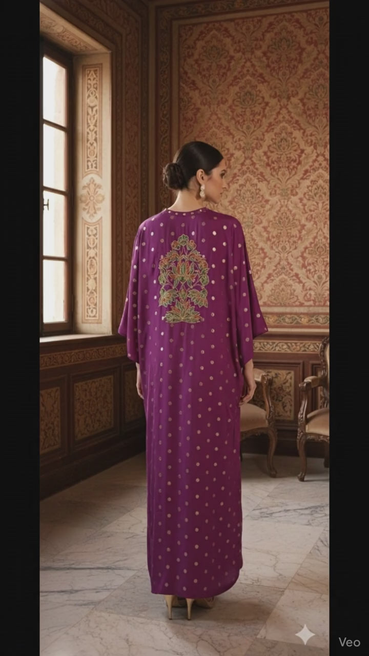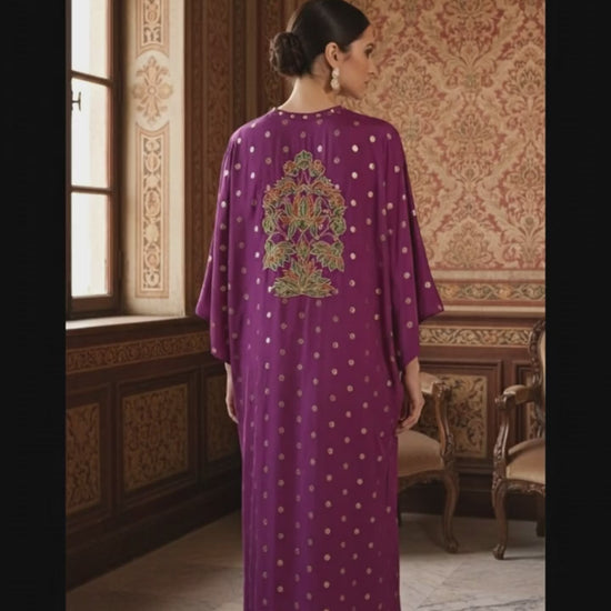 Jamawar ketan silk box cut style kaftan with jamawar applique