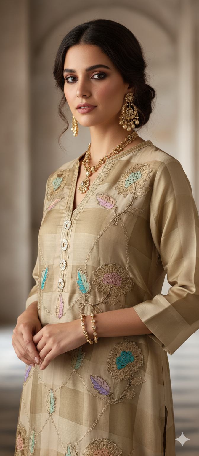 Wedding Edit - Pure Organza Silk - Tartan Beige