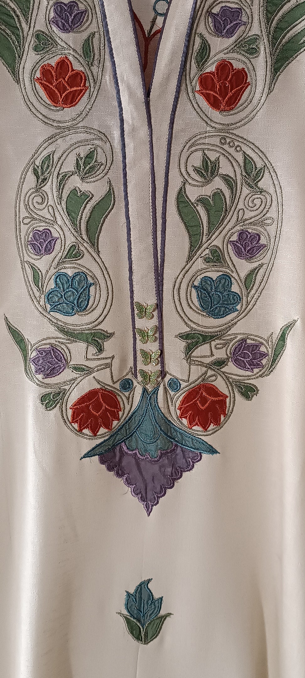 Light wool blend marina fabric with pure silk Applique box cut style shirt shalwar/trouser (2pcs)