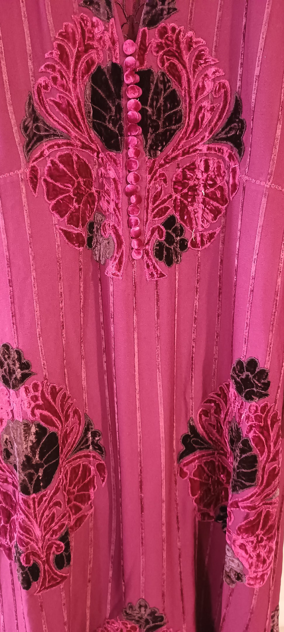 Winter Edit - Velvet striped linen with Velvet Applique - Fuschia